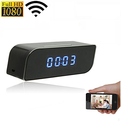 - 1.Mini Wifi Camera with clock designed, 1080P camera lens can shoot with clear 1920x1080p video. Clock size: 12.6*12.6*2.1 inches; Net Weight: 2.1lb.